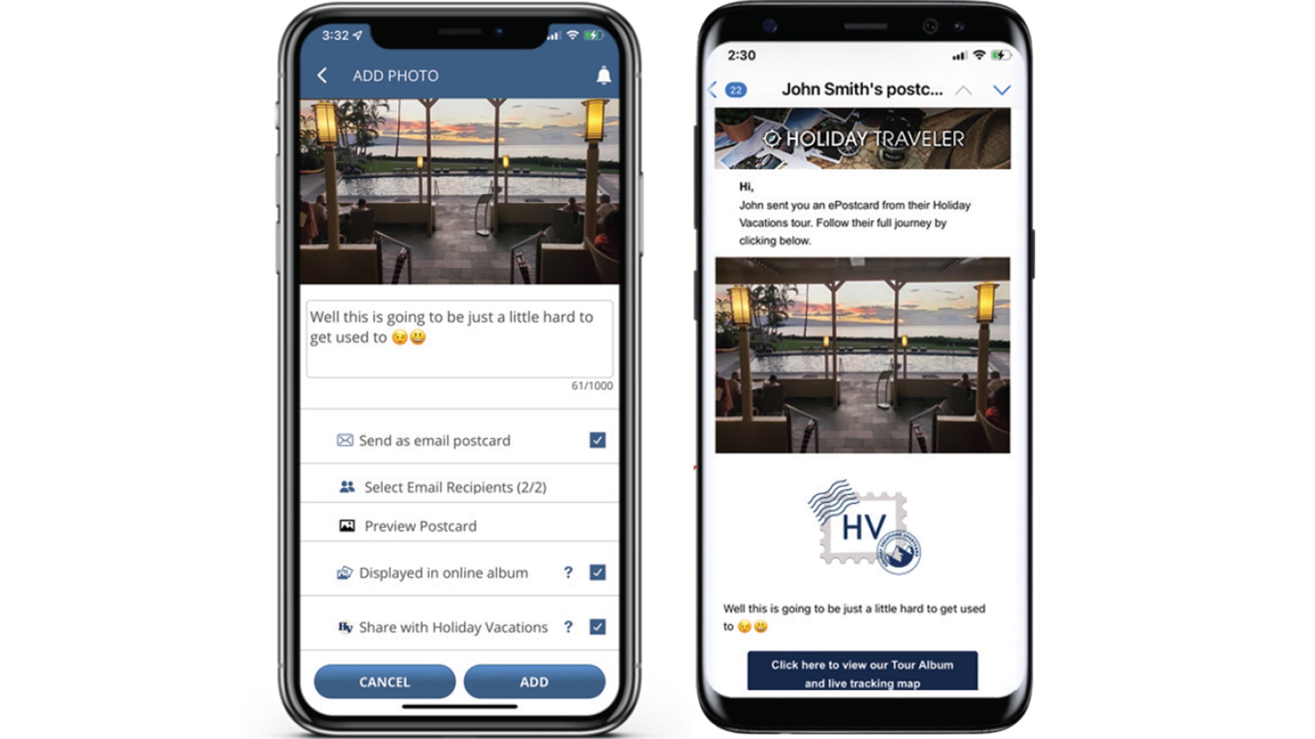We give you the option to choose whether you share your photos with Holiday Vacations or just your friends and family. When you upload photos to your Tour Album or Send an E-Postcard, you can press the check box to either enable Holiday Vacations to showcase your photos or keep them private. If you choose to share your photos with Holiday Vacations, it gives us the right to use those photos on social media or other promotional material like brochures and catalogs.