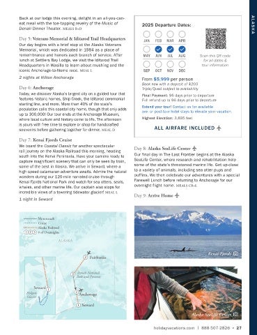 Kenai Fjords National Park and watch for sea otters, seals, Farewell Lunch before returning to Anchorage for our